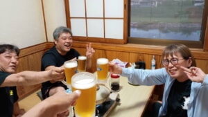 夕食は定番の「なかの」さんで祝杯です。3人共、初リバーおめでとう\(^o^)/