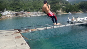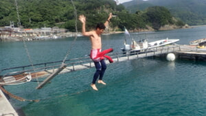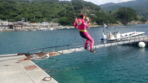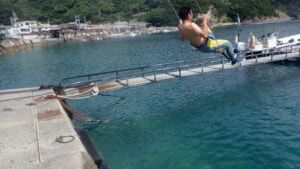 その時にはまだ無かった『海のブランコ』をセイジさんも飛んでくれました。けど・・・、