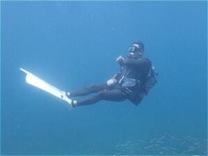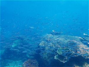 透視度は20mオーバー!。大きく育ったキビナゴが周りをグルグル回っています
