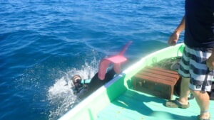 4日前の平碆ツアーに続いての2回目の海洋実習には、ユリちゃんも参加。