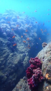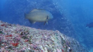 やや、うねりがあったものの、透明度も午前中よりキレイな12m、