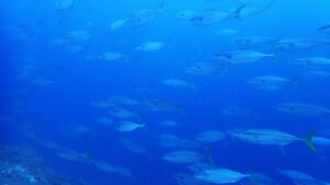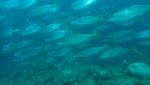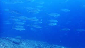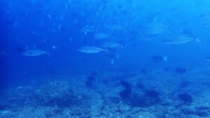 キビナゴを狙ってカンパチも来たけど透明度8mじゃ~、じっくり見れんな~。