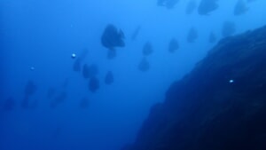 一瞬、頭上を通リ抜けた20匹強のツバメウオも圧巻、
