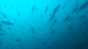 最初にブリを見たエリアにもう一度行くと、やっぱり来た!しかも、さっきよりも大きな群れ。