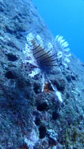 ハナミノカサゴと一緒に撮影はアキマサ君。近づき過ぎるなよー。