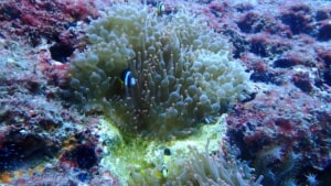 根の上のイソギンチャク畑のクマノミとミツボシクロスズメも見て、