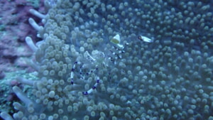 このイソギンチャクにはニセアカホシカクレエビが5~6匹いました、しかもデカい。