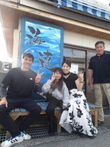 マサヤスさんと引率石居の4人で『日和佐』の海。