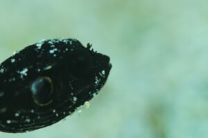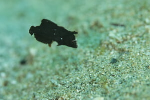 サザナミフグの幼魚にテンスの幼魚。両方ともかなり小さくまだ黒い!
