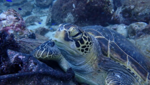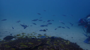 民家下No3、アンカー元にはかなり高確率で大きなアオウミガメが居ますね。