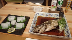 定宿の「やなか屋」さんは先客が居たので、到着した夜はひっそり手酌^^;