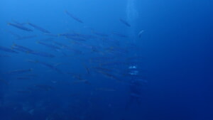 ツムブリ、カンパチ、カマスがキビナゴにアタック!!