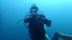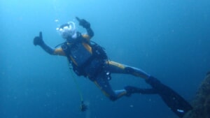1ダイブ目は頭から潜って苦戦してたリサちゃんもフィートファーストでスムーズに潜降。