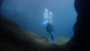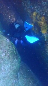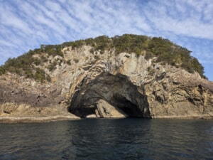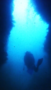 【恵比須洞】はこの洞窟に潜ります。ボートを近くまで付けてエントリー。