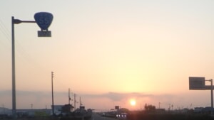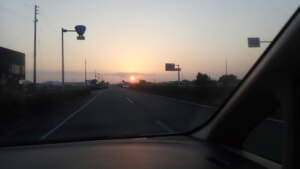 徳島に着き、高速を降り、55号を走ってると朝日が上がって来ました。