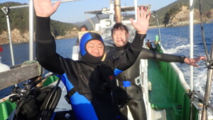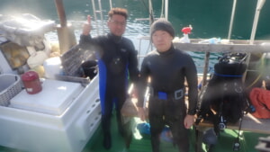 ※セージさんは2回目のドライスーツ、コーイチさんは『ロクハン』で何℃まで潜れるか?テストダイブです。