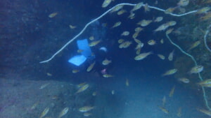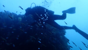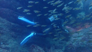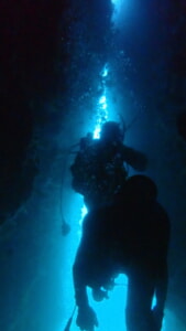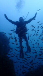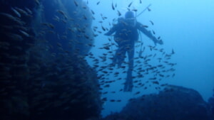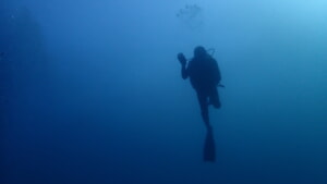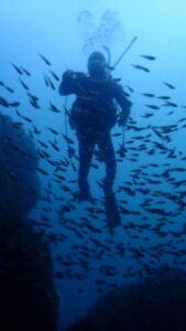 奥にいるダイバーの姿が見えないほど。