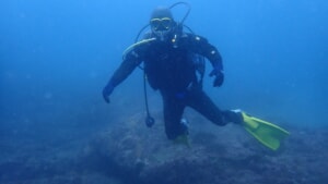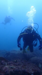海洋実習2回目のユウさんと中性浮力を特訓中のセージさん、