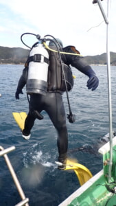 ユウさん、2回目のジャイアントストライドエントリーで海へ。