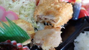 ※唐揚げの横の揚げ物、白身魚と思ったら“カツ”で、テンションUP!