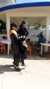 ※ユーコさんがウエットを着るのをススムセンセーが手伝ったのがキッカケ。