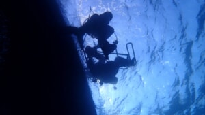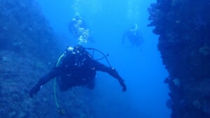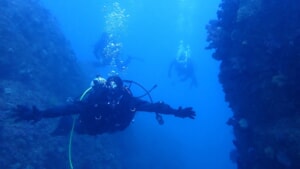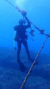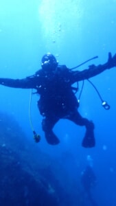 待つあいだ、セージさんは1本目みたいに遠く離れる事なく、近くで中性浮力の自主トレ中~。