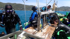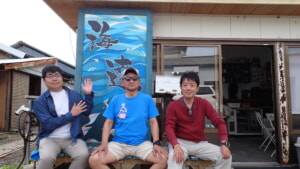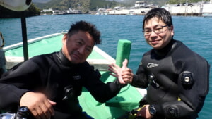 2本楽しく潜って、【海達】さんの店先で写真を撮って貰って、